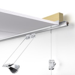 Deze schilderij ophangsystemen worden aan het plafond gemonteerd of met een systeemplafond gebruikt. Door het gebruik van een plafond ophangsysteem kan de inrichting van alle wanden in een ruimte flexibel worden aangepast. De ophangrail kan direct op het betonnen plafond worden bevestigd, terwijl de ophangdraden strak langs de wand vanaf het plafond hangen.